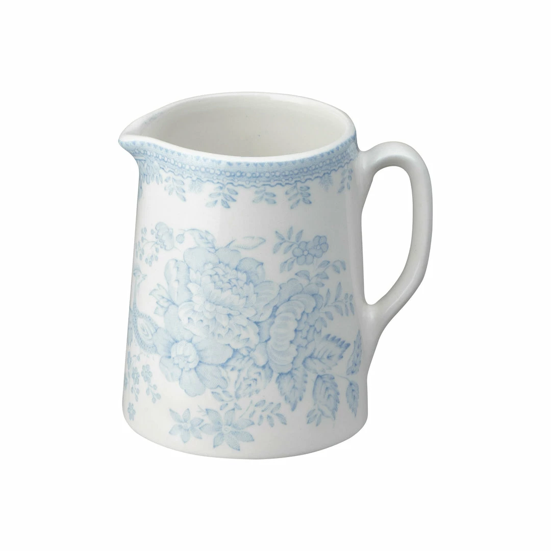 Beautifully hand-decorated, the intricate pale blue motifs of the jug add English tearoom charm to refreshments at any time of day.
