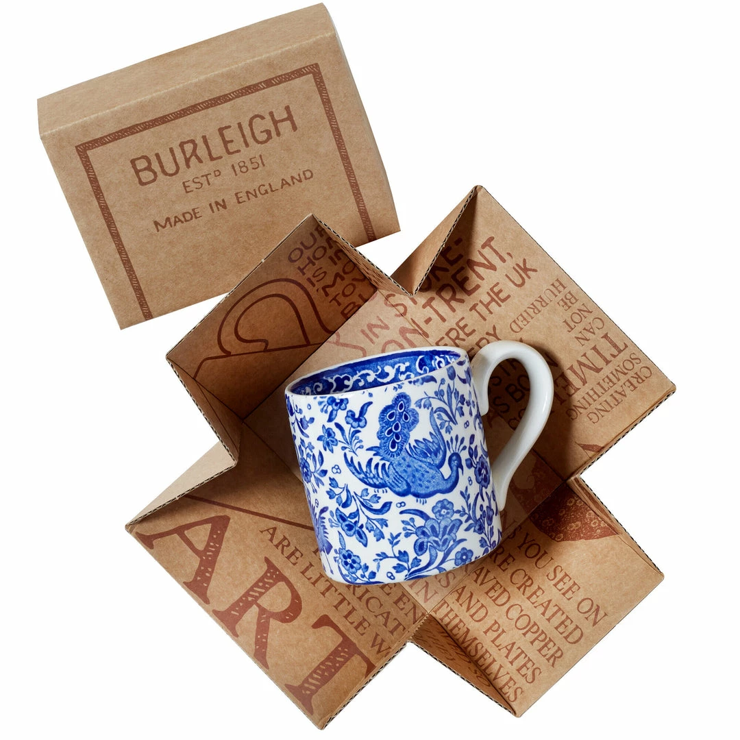 Adorned in Burleighβs Regal Peacock pattern, this half pint mug (with Burleigh gift box included) will bring a sophisticated touch to any coffee break.