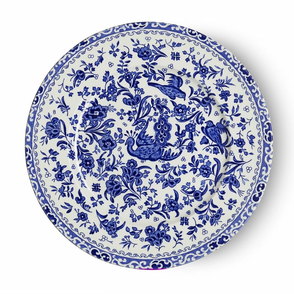 Decorated in an eye-catching oriental bird pattern, this Blue Regal Peacock Plate makes a beautiful addition to the dinner table.